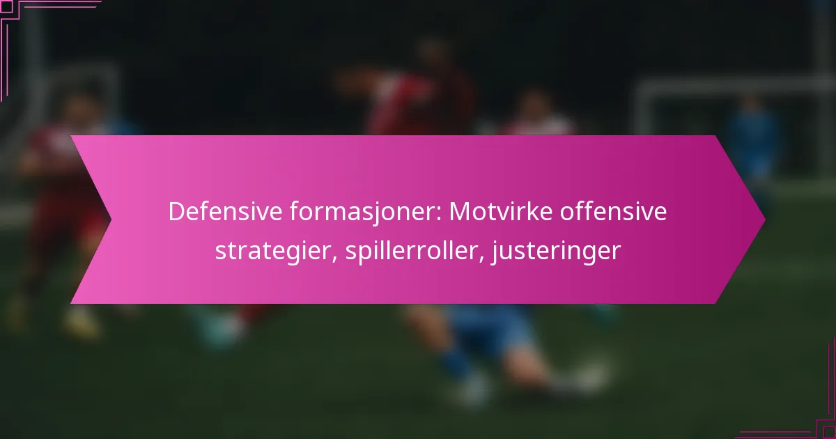 Defensive formasjoner i fotball er essensielle strategier som gjør det mulig for lag å motvirke offensive spill effektivt. Ved å organisere spillerne i spesifikke roller og justere posisjoneringen basert på motstanderens taktikk, kan forsvaret forstyrre offensiv momentum og redusere sjansene for scoring. Å forstå disse formasjonene og ansvarsområdene til hver spiller er avgjørende for å nøytralisere angreps trusler.